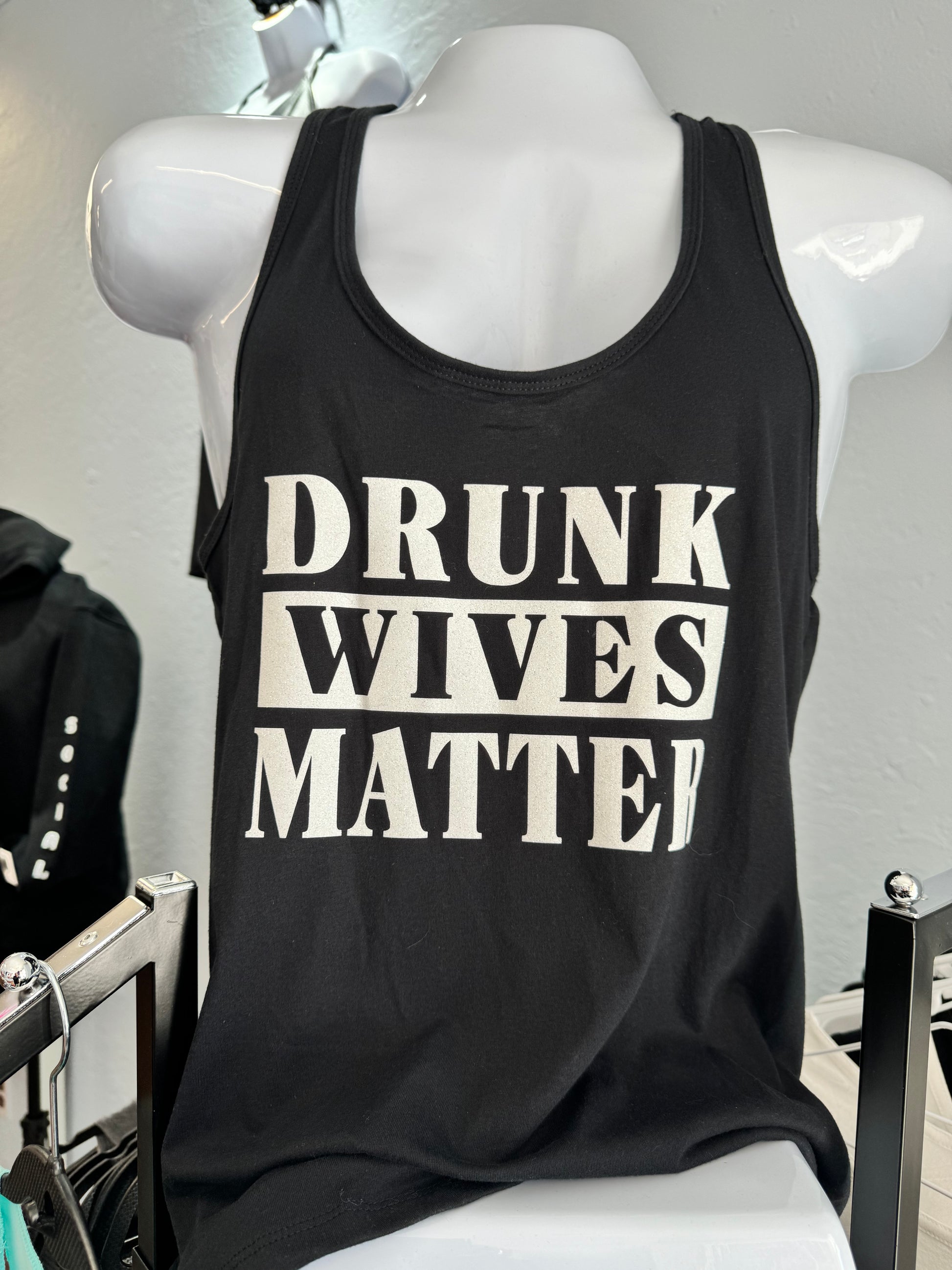 Black graphic tank top with your choice of colors Drunk Wives Matter glitter white shon in picture neon pink shown in picture please contact me for custom orders